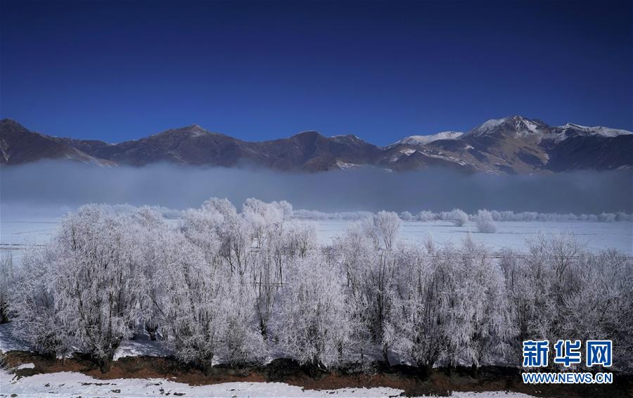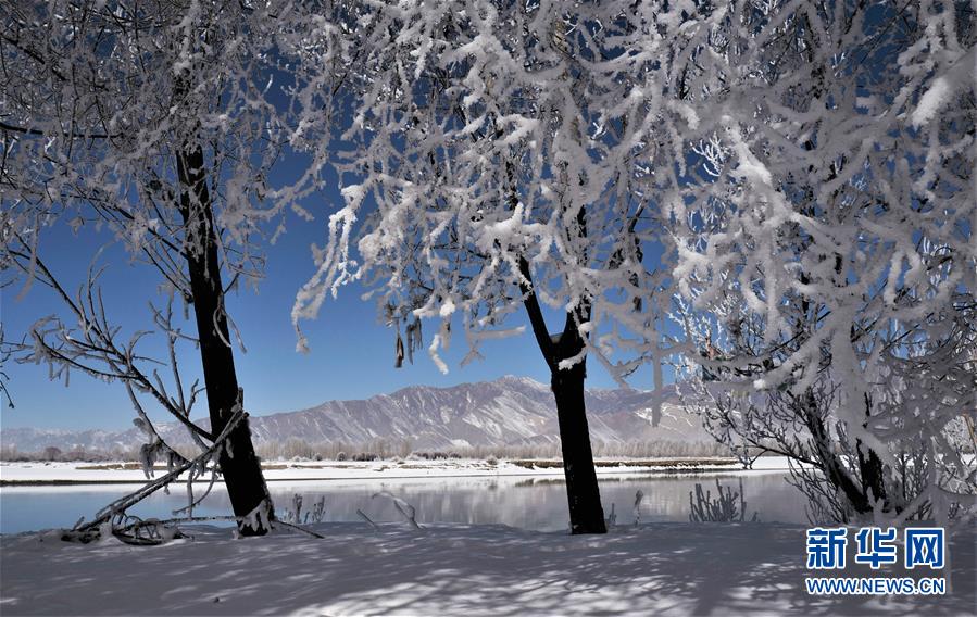 雅鲁藏布江流域的雾凇景观(12月23日摄)。