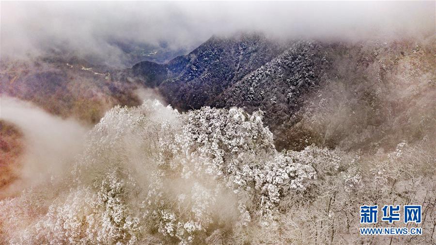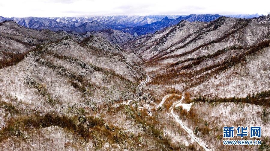 11月5日无人机拍摄的陕西省汉中市佛坪县凉风垭景区雪景。 新华社记者陶明摄