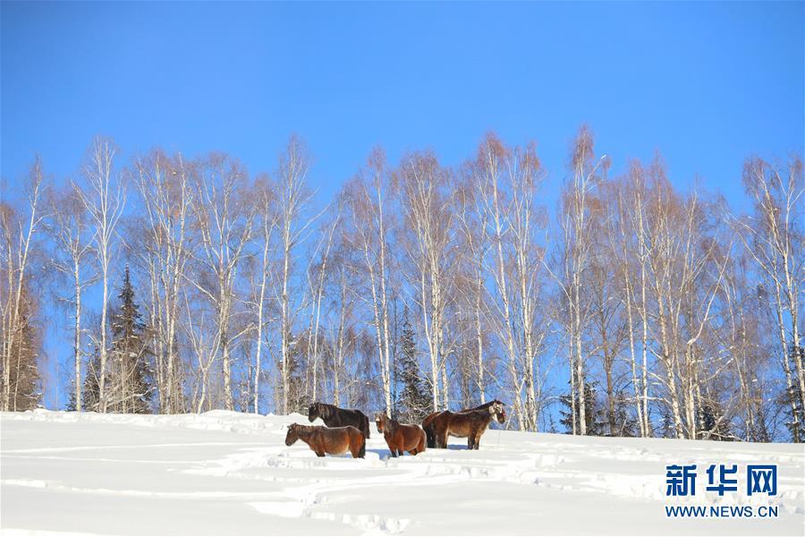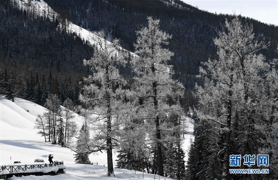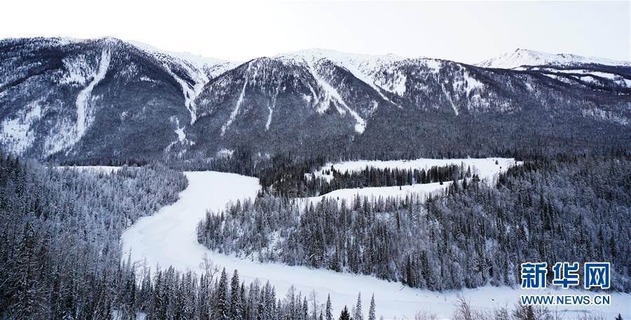 新疆喀纳斯景区冬日美景如画。