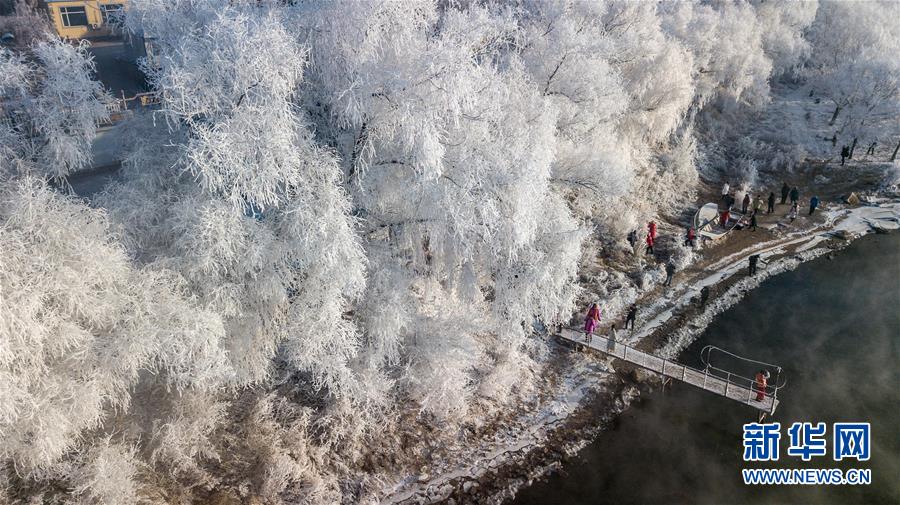 当日,吉林省吉林市出现雾凇景观,松花江畔的树木仿佛披上了银色盛装。
