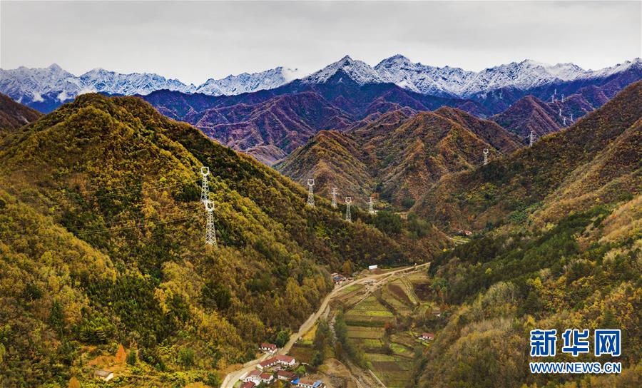 11月5日无人机拍摄的陕西省汉中市佛坪县城旁的秦岭景色。 新华社记者陶明摄