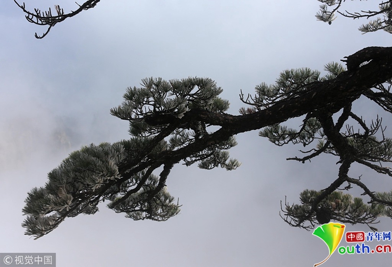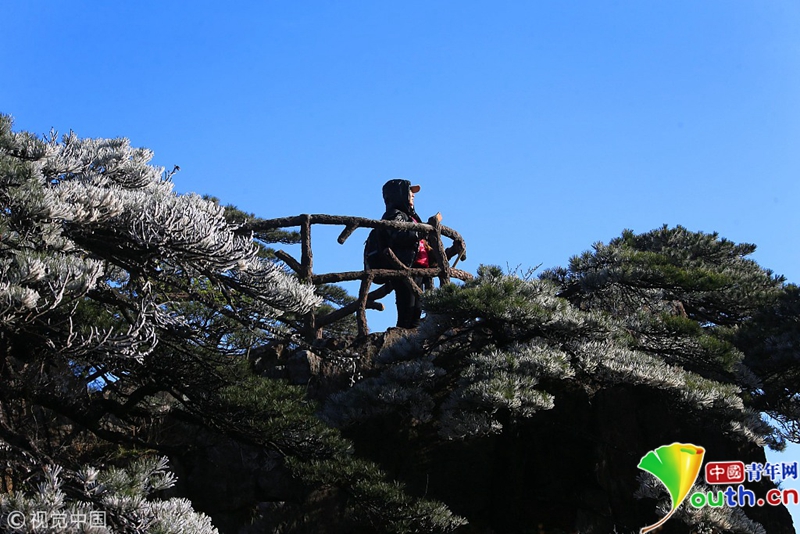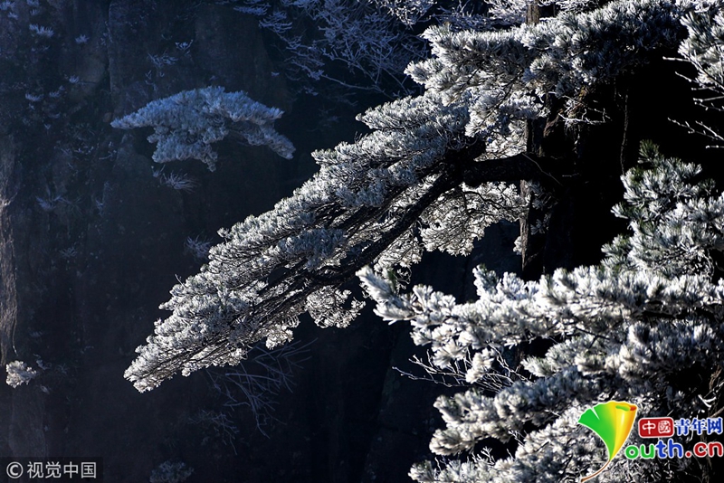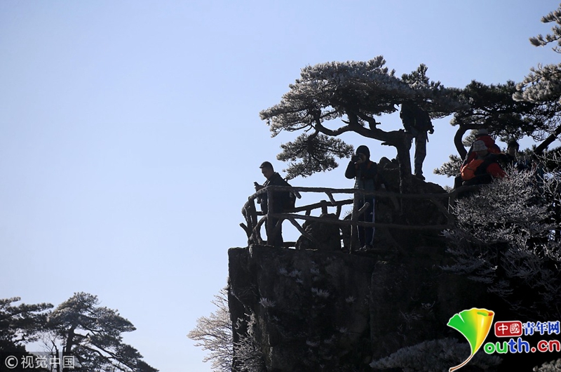 4月15日,安徽黄山出现了四月阳春罕见的雾凇奇观。图片作者:施广德/视觉中国