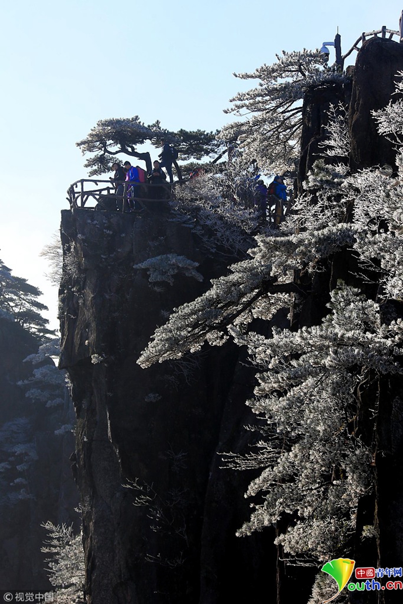 安徽黄山,受强冷空气影响,气温突降,出现了四月阳春罕见的雾凇奇观。