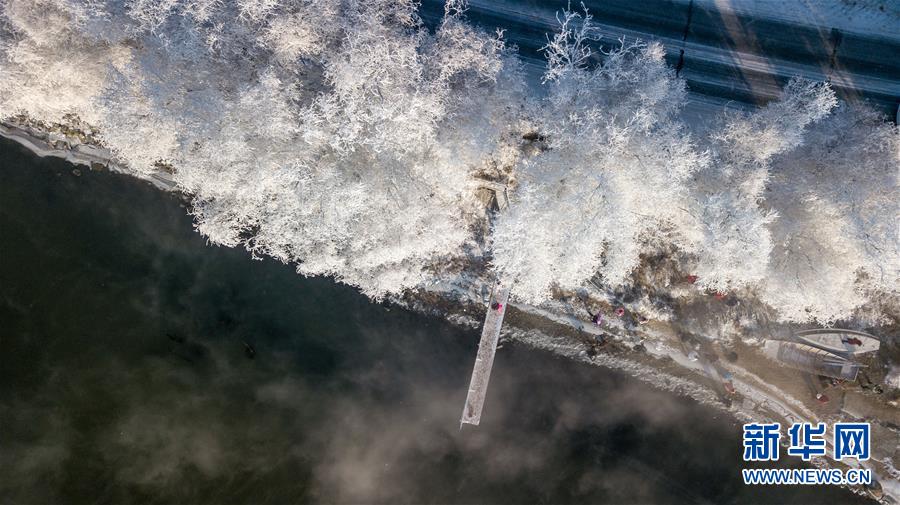 这是在吉林省吉林市丰满区吉丰东路松花江畔拍摄的雾凇美景(12月12日无人机拍摄)。 新华社记者张楠摄