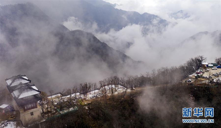 11月17日无人机拍摄的华山雪景。 当日凌晨的一场大雪将西岳华山变成白雪皑皑的世界,白雪与苍翠的华山奇松、灵动的云海交相辉映,如梦如幻;满山遍野玉树琼花,树枝上通体的雾凇晶莹剔透,绘就冬日画境,美不胜收,游人如置身人间仙境。 新华社记者陶明摄