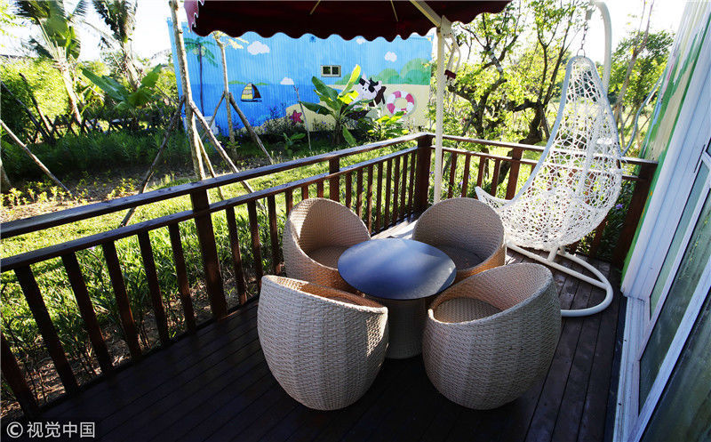 2017年8月9日,海南屯昌,坡心镇猪哈哈的农场正式推出“集装箱客房”项目,这也是海南首家主题式集装箱住宿。齐淼/视觉中国