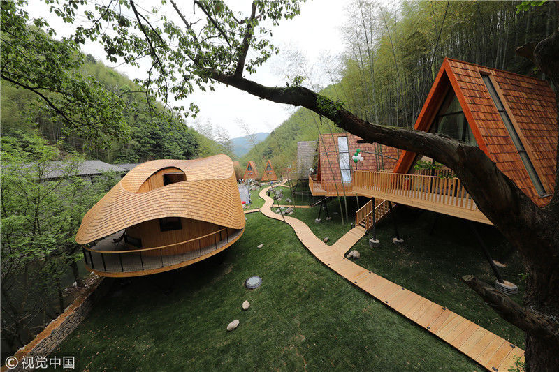 2018年4月22日,浙江宁波,树蛙部落的特色房屋。张培坚/视觉中国