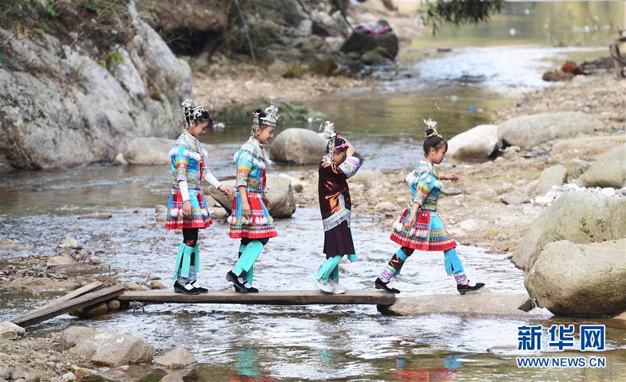 乌英苗寨的姑娘身着节日服装,欢度春节(2月17日摄)。