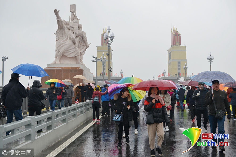 2018年12月26日,南京。南京长江大桥维修改造工程竣工通车在即,12月26日至28日三天向公众开放,12月26日,“市民开放日”首日,早晨九时许,虽然下着雨,但记者在南京长江大桥入口和桥上看到,如织的市民打着伞来到大桥,整个桥上全是撑伞观看的市民,足有万人,十分壮观。