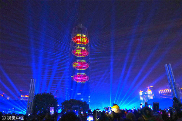 2018年1月1日,郑州, “文化跨年夜 出彩郑州人” 跨年活动在郑州市举行,跨年阅读会、音乐会、街舞展示、行进管乐表演、非遗项目展、零点灯光秀等六大专项跨年活动精彩纷呈,以此迎接2018年的到来。视觉中国