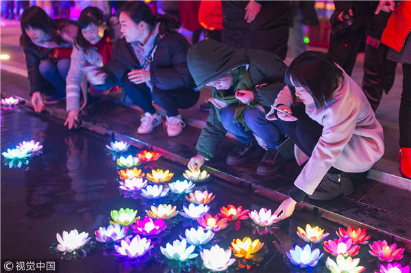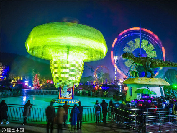 2017年12月31日,南京银杏湖乐园跨年夜,灯光璀璨。