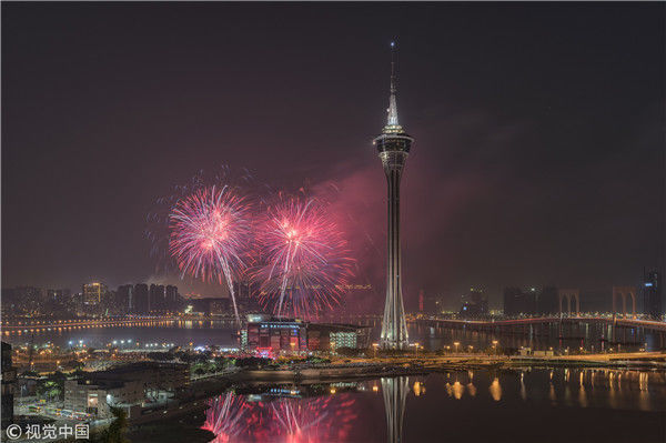 2018年1月1日,凌晨,澳门跨年烟花汇演。2018年元旦澳门举行的跨年烟花汇演。