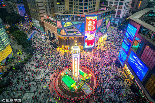 2017年12月31日晚,重庆市渝中解放碑步行街,10万人齐聚解放碑,欢欢喜喜度过2018跨年夜。每年重庆的跨年夜,人们都会齐聚解放碑,纵观国内大城市的跨年夜,极少有哪座城市有重庆这么热闹,这已经成为中国城市中最有特色的跨年活动之一。解放碑作为重庆最具标志性的建筑之一,可谓意义非凡。虽然周边建筑越来越高,使相形之下的解放碑显得越来越小,但依然撼动不了解放碑在重庆人民心亩中的地位。