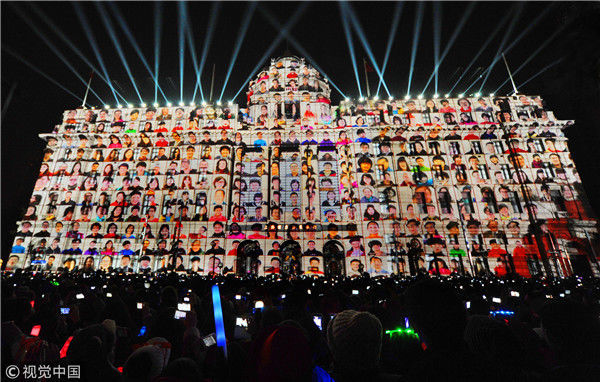 2012年12月31日,上海,“2013上海迎新年倒计时晚会”当晚在黄浦江畔的外滩金融广场上举行。最大亮点的4D灯光秀综合运用计算机图形技术、灯光投影技术、激光技术等多种技术表现手段,利用最新的科技和最新的艺术形式作为载体,让百年建筑活过来“跳舞”。