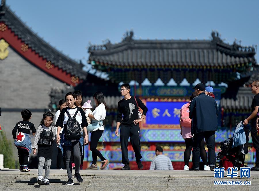 游客在天津杨柳青古镇内游览(10月1日摄)。 运河穿城过,古镇草色新,千年画乡杨柳青自传统中浸润出与众不同的颜色。40年斗转星移,这个沉淀千年的小镇,用别样的风姿讲述了一个历史与现在碰撞而出的改革“新”故事。 新华社记者岳月伟摄