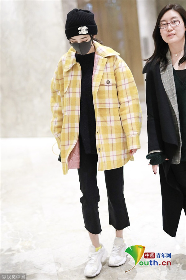 2018年1月6日,上海,杨幂现身某酒店。她戴着帽子口罩,身穿黑色套装,而外面搭配的奶黄格子外套却瞬间减龄,明亮又惹眼,无惧寒冬露着纤细脚踝,依旧是那个很会穿搭的大幂幂。