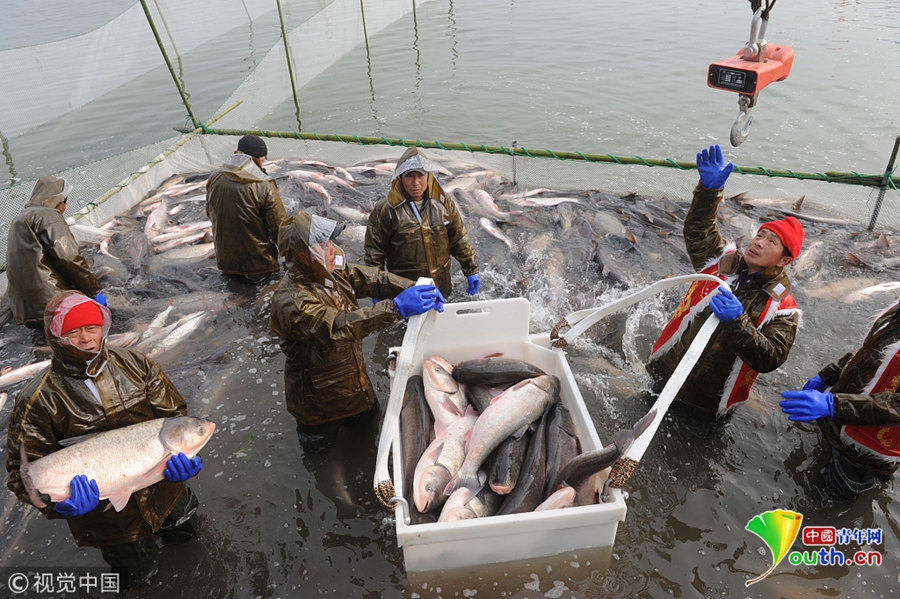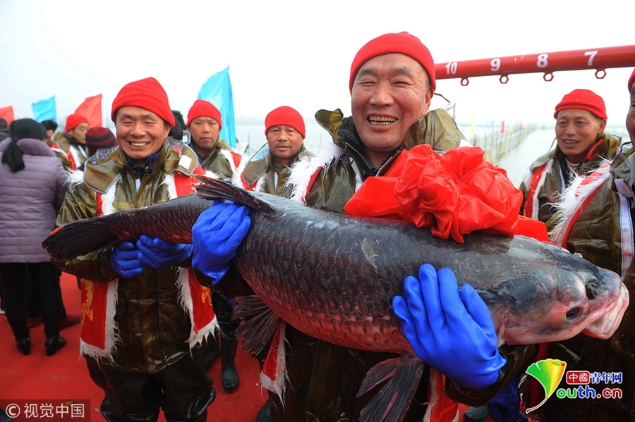 安徽阜阳:八里河冬捕鱼“头鱼”拍出88万元