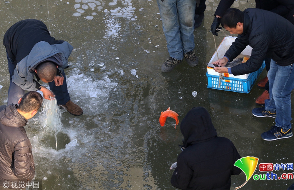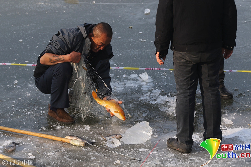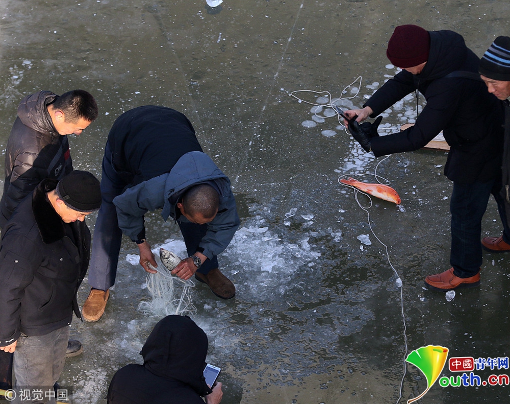 2018年12月26日,吉林松原,查干湖迎来了“红网”,单网捕捞约30万斤。