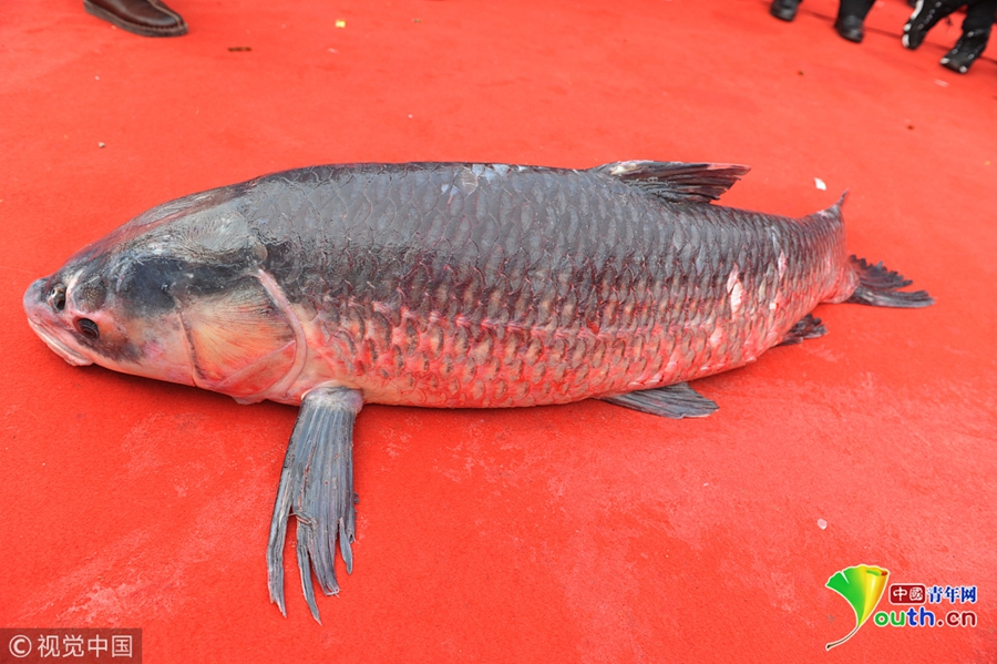 1月6日,安徽省阜阳市颍上县八里河渔场正式开始进行冬季大捕鱼,捕获的一条重达78斤的“头鱼”拍出88万元,现场吸引众多客商和广大群众观看。据悉,此次所得拍卖款全部用于当地脱贫攻坚。 图片来源:视觉中国