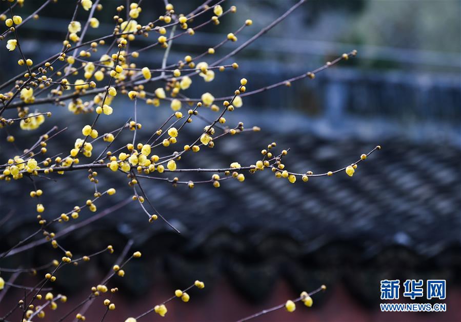 超山景区内盛开的腊梅花(1月16日摄)。 临近春节,浙江省杭州市余杭区超山景区内的寒梅凌冬开放,黄色的腊梅已处处飘香,白梅和红梅星星点点绽放在枝头,大部分的梅花还处于“含苞待放”的状态。据悉,杭州余杭超山景区的探梅期从1月中旬开始将一直延续到3月,春节期间将进入最佳赏梅期。 杭州市余杭区超山景区以梅景而出名,为江南三大探梅胜地之一。花开时节方圆十里如飞雪漫空,故有“十里梅花香雪海”之美誉。超山梅花已有1000多年的种植历史,品种很多,有白梅、红梅、绿萼梅,以白梅居多。 新华社记者 徐昱 摄