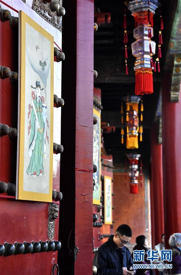 这是在故宫内拍摄的古代宫廷节日装饰品(1月25日摄)。 春节将至,北京故宫博物院内张灯结彩,到处悬挂着宫灯、万寿灯、年画、门神、福字等古代宫廷节日装饰品,让来自国内外的游人感受到浓浓的年味。 新华社记者 李欣摄