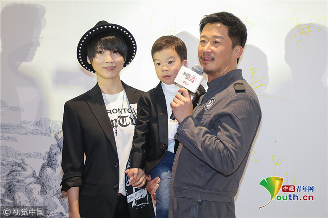 幸福一家!谢楠助阵老公电影儿子嘟嘴呆萌抢镜