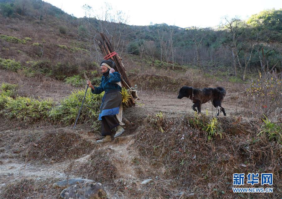 1月25日,在云南省兰坪县,余永妹背柴回家。
