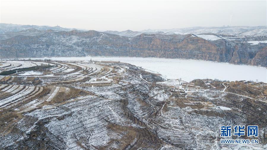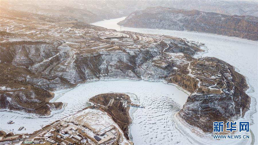 这是2月17日无人机拍摄的老牛湾雪景。 黄河老牛湾位于山西省和内蒙古自治区交界处。 新华社记者 彭源 摄