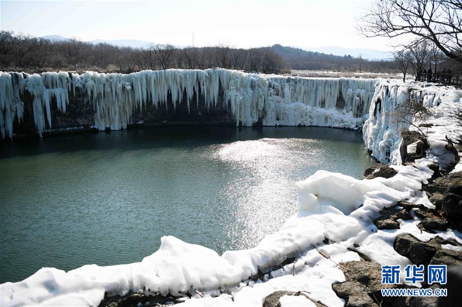 这是吊水楼瀑布的冰瀑景观(2月25日摄)。 去冬今春以来,黑龙江省镜泊湖的吊水楼冰瀑景色壮观,吸引许多游人前来观赏。 新华社记者 王建威 摄