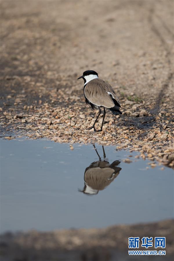 3月7日,在以色列阿格蒙胡拉鸟类和自然公园,一只黑胸距翅麦鸡在觅食。新华社记者郭昱摄
