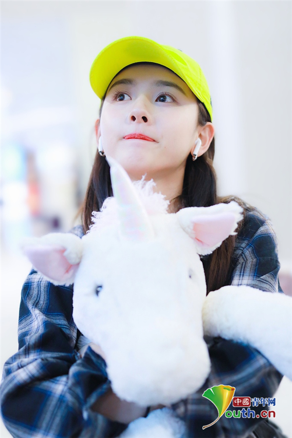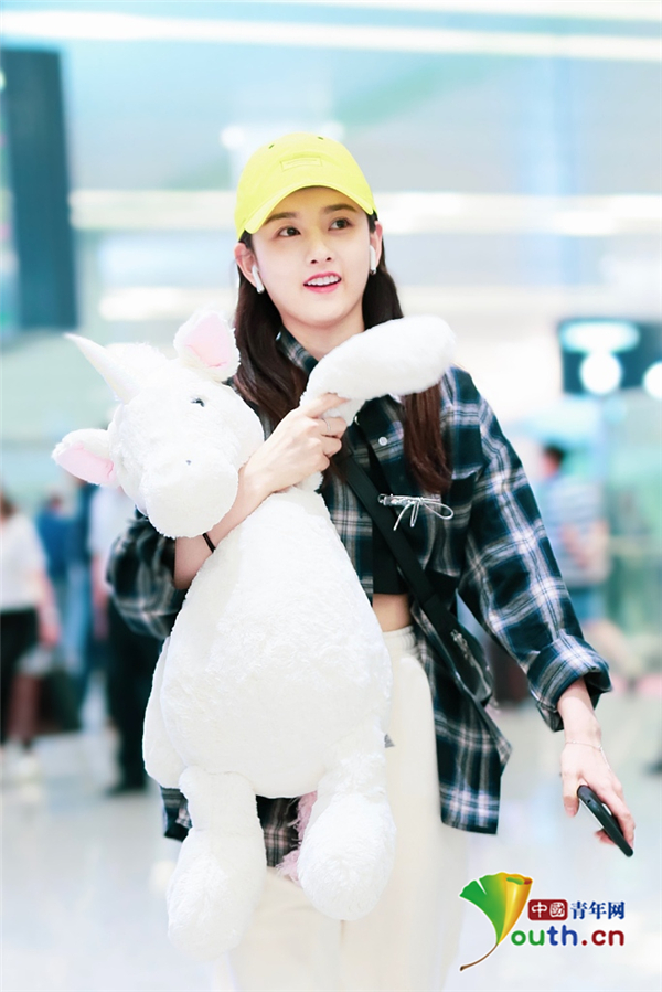 2019年5月12日,北京,宋祖儿现身机场。她穿格子衬衫戴小黄帽挥手大步走,元气少女活力满满,抱玩偶变身独角兽女孩童趣十足超可爱。