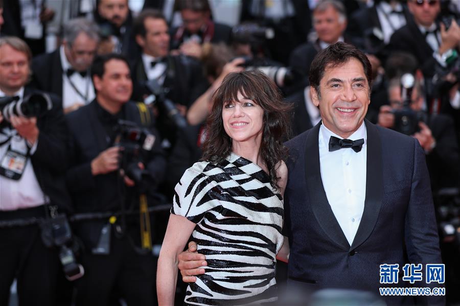 5月14日,在法国南部城市戛纳,法国演员夏洛特·甘斯堡(左)和西班牙演员哈维尔·巴尔德姆亮相开幕式红毯。 5月14日,第72届戛纳电影节在戛纳开幕。本届电影节将持续至5月25日。 新华社记者 张铖 摄