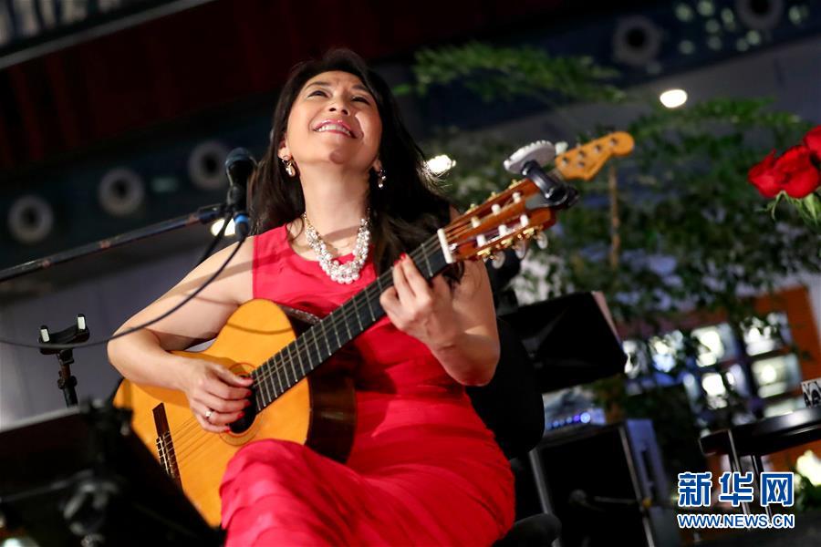 5月19日凌晨,歌手小野丽莎在北京国家大剧院“午夜玫瑰”爵士乐专场音乐会上演唱。 5月18日晚,作为亚洲文化展演活动的演出之一,著名爵士歌手小野丽莎携乐团首次登台国家大剧院,亮相“午夜玫瑰”爵士乐专场音乐会。 新华社记者 张玉薇 摄