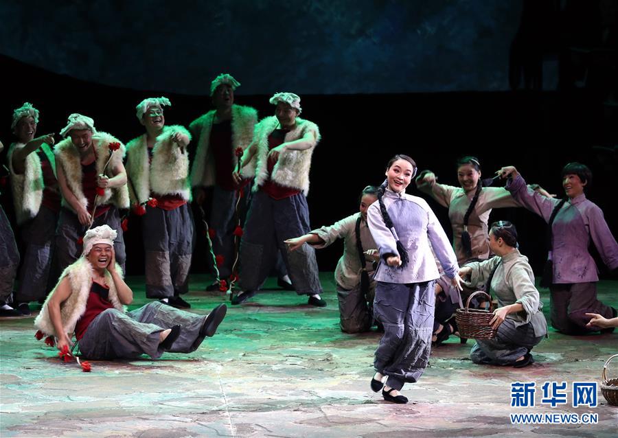 这是5月21日拍摄的秦腔现代戏《王贵与李香香》演出场景。 新华社记者 刘颖 摄