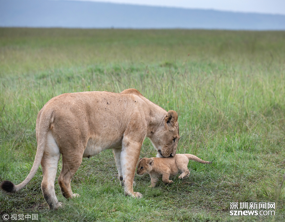 英国野生动物摄影师Paul Goldstein在肯尼亚的马赛马拉拍到了一头小狮子被妈妈教训的场面。