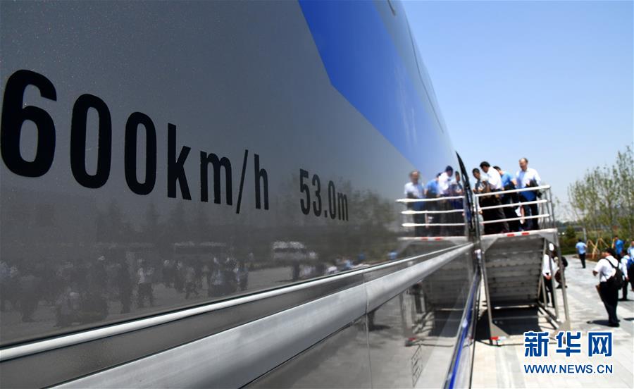 5月23日,参观人员登上时速600公里高速磁浮试验样车参观。