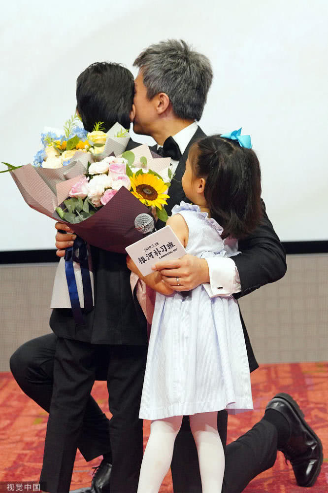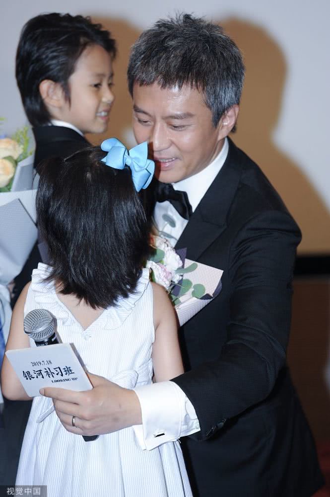 2019年7月11日,上海,邓超新片《银河补习班》上海首映,孙俪带着等等、小花前来助阵,现场的邓超一看就是个女儿奴,在现场和目光都不离开小花,又是亲亲抱抱,又是单膝跪地安抚,十足疼爱这位前世小情人。