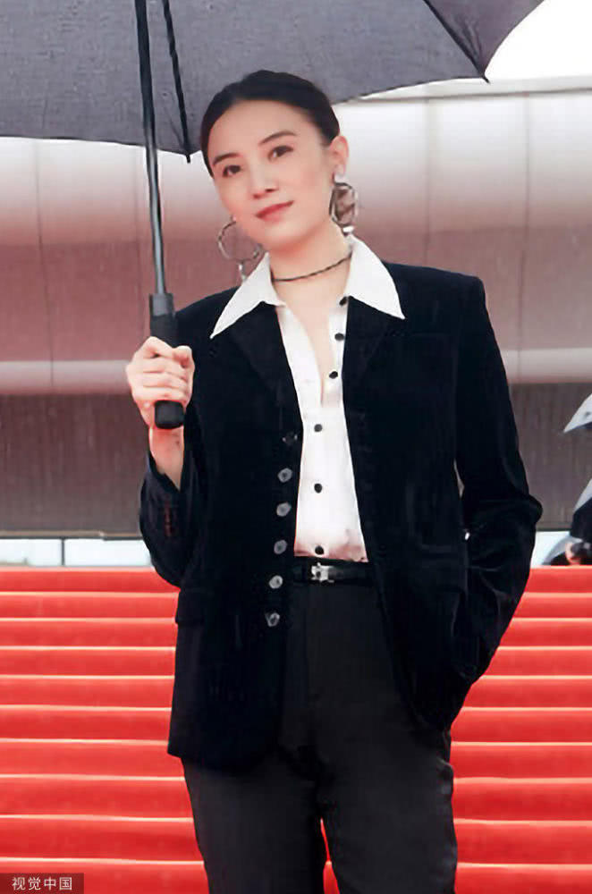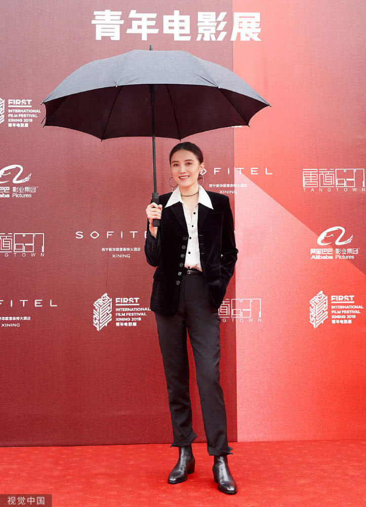 姚晨穿拖尾红裙亮眼吸睛,独自撑伞走红毯灿笑明艳动人。图片来源:视觉中国