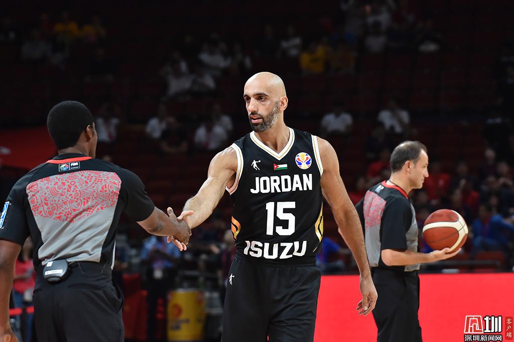 约旦球员阿巴斯赛前与裁判握手,阿巴斯曾在cba联赛效力。