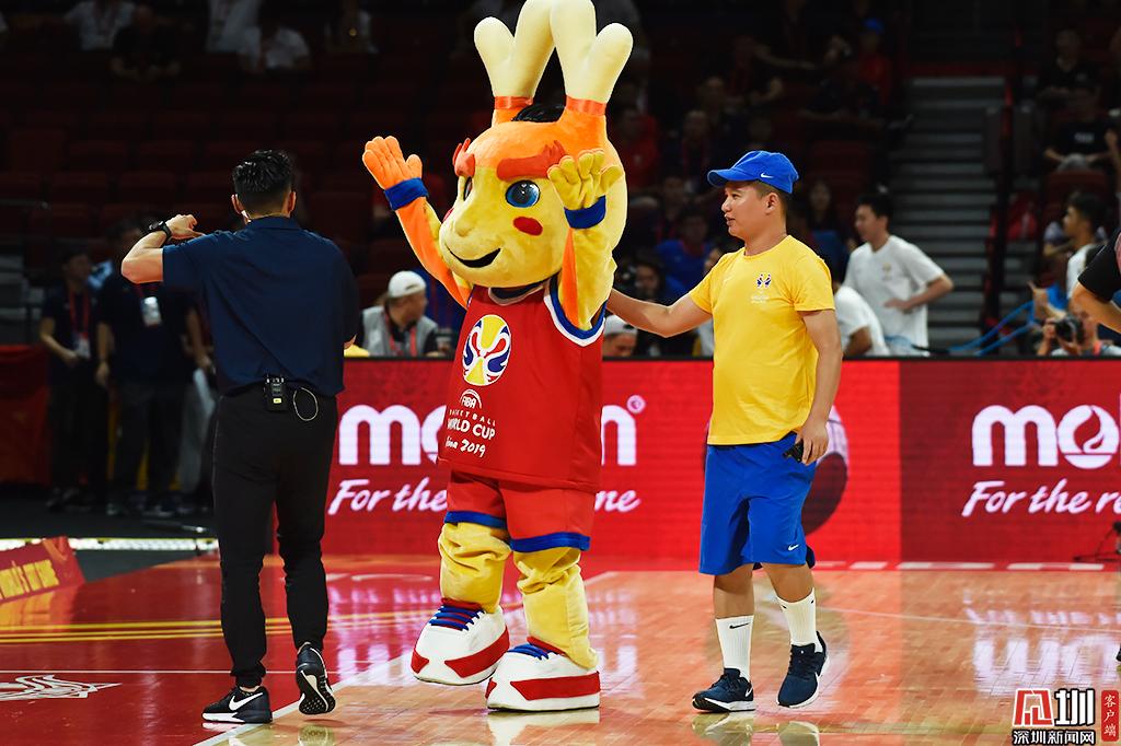 2019年男篮世界杯吉祥物现身深圳湾体育中心。