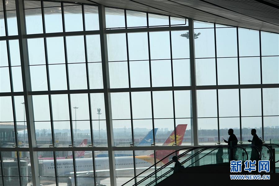 9月25日,中国南方航空公司的CZ3001次航班从北京大兴国际机场起飞。当日,北京大兴国际机场正式通航。北京大兴国际机场位于北京市大兴区和河北省廊坊市广阳区之间,与天安门直线距离为46公里,是目前全球建设规模最大的新建机场。新华社记者鞠焕宗摄