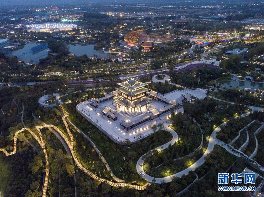 北京世园会园区内的永宁阁(10月7日无人机拍摄)。新华社记者才扬摄