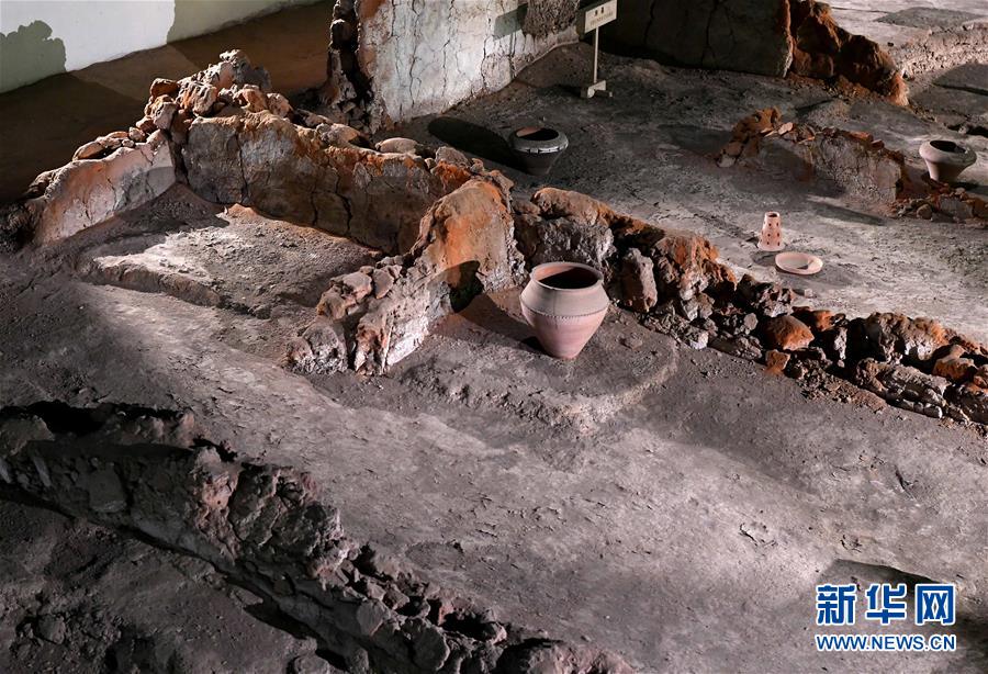 这是河南郑州大河村遗址博物馆内的仰韶文化房基局部(12月11日摄)。
