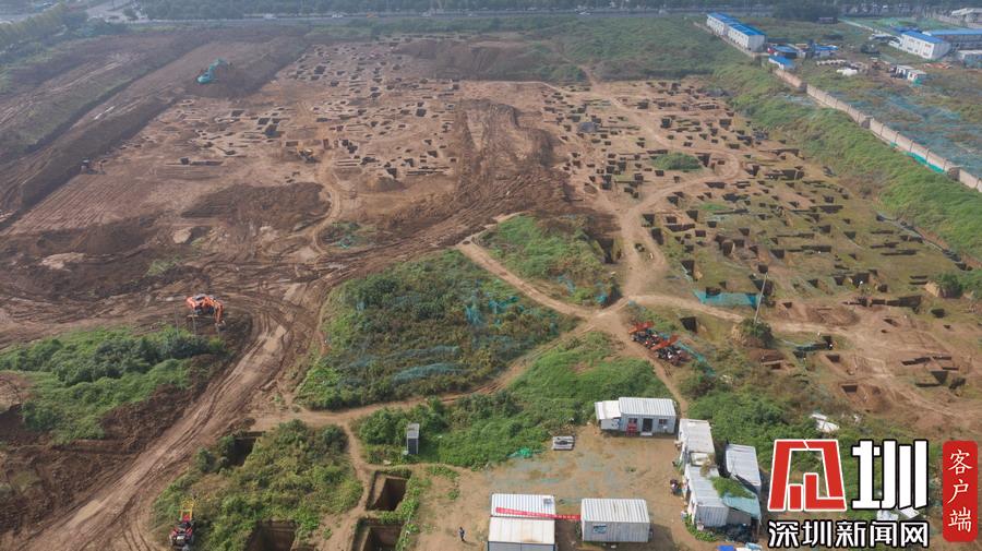 西安宜家工地挖出古墓 空中俯瞰数百墓坑密密麻麻