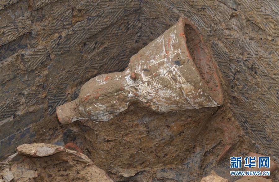 这是发掘的随葬“摇钱树”底座(11月15日摄)。