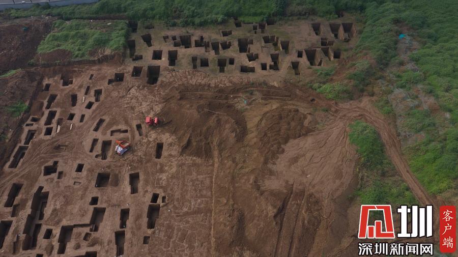 西安宜家工地挖出古墓 空中俯瞰数百墓坑密密麻麻