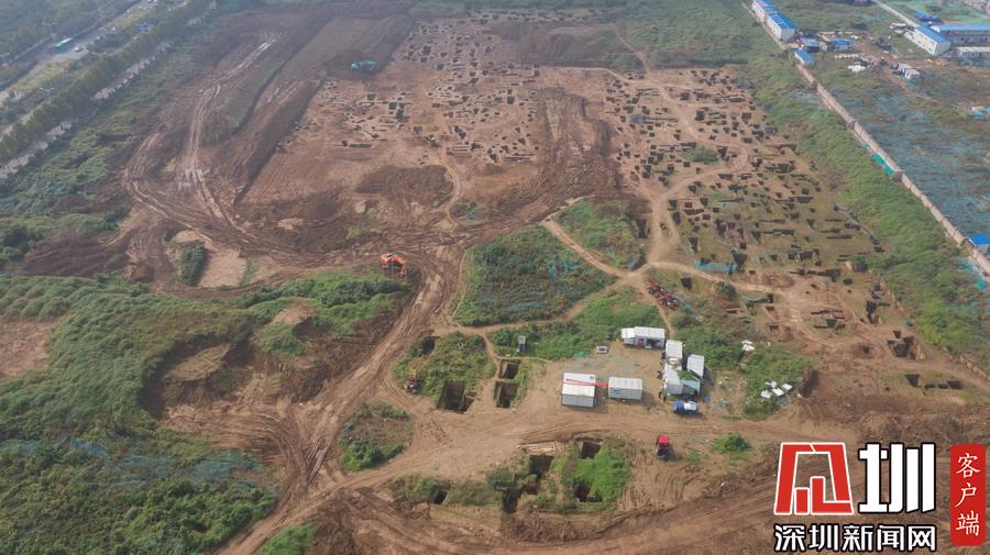 西安宜家工地挖出古墓 空中俯瞰数百墓坑密密麻麻