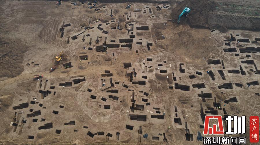 西安宜家工地挖出古墓 空中俯瞰数百墓坑密密麻麻
