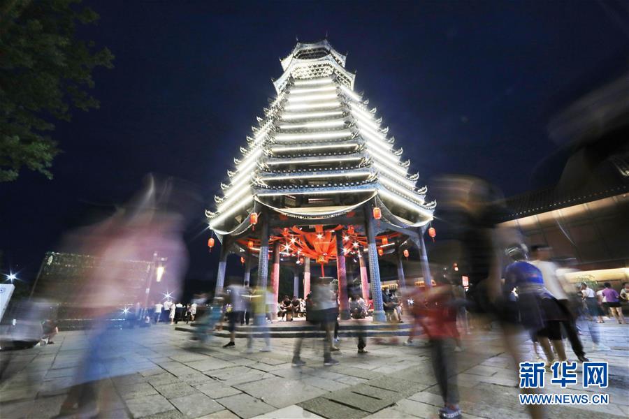 7月2日,游客在丹寨万达小镇游览。新华社记者欧东衢摄