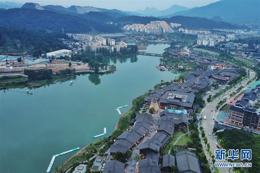 7月2日无人机拍摄的丹寨万达小镇一角。2017年7月,贵州省丹寨县的丹寨万达小镇对外开放。两年来,丹寨万达小镇游客接待量持续增长,为700余名贫困户提供就业岗位,有力助推了丹寨县的脱贫攻坚工作。新华社记者欧东衢摄